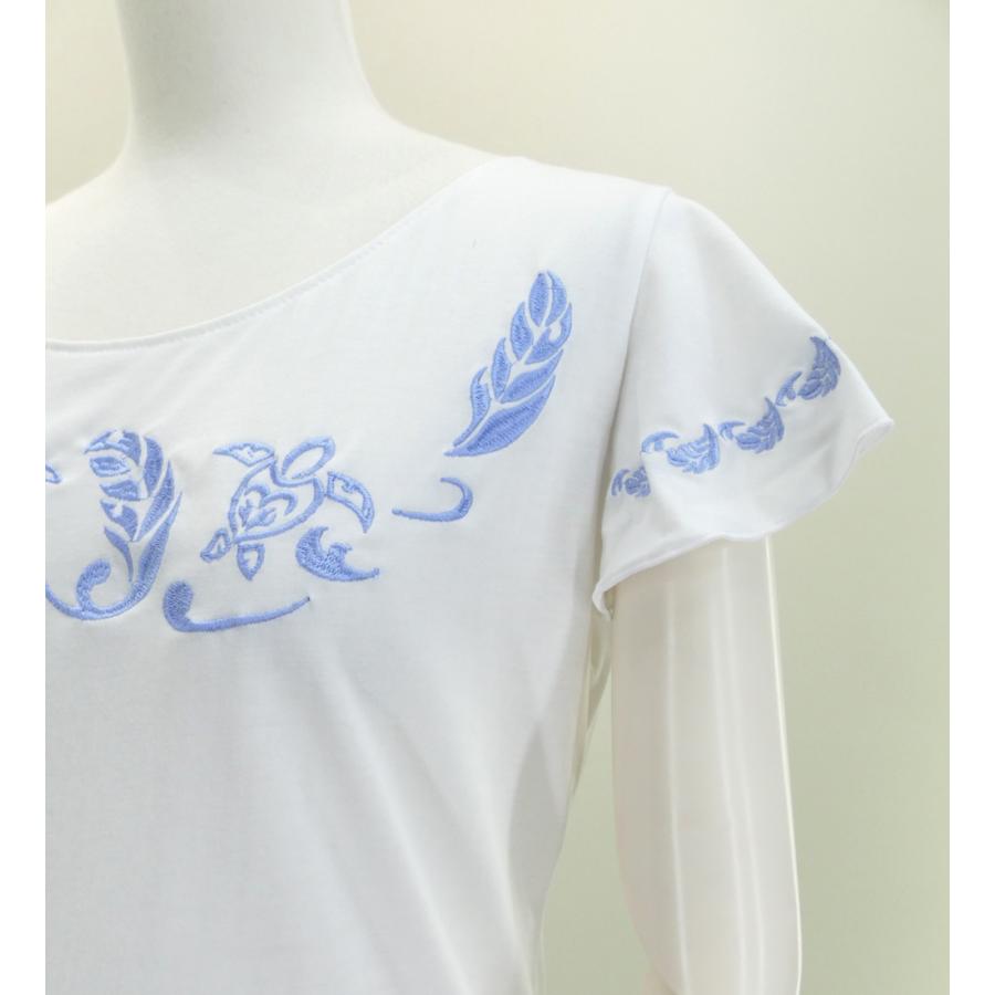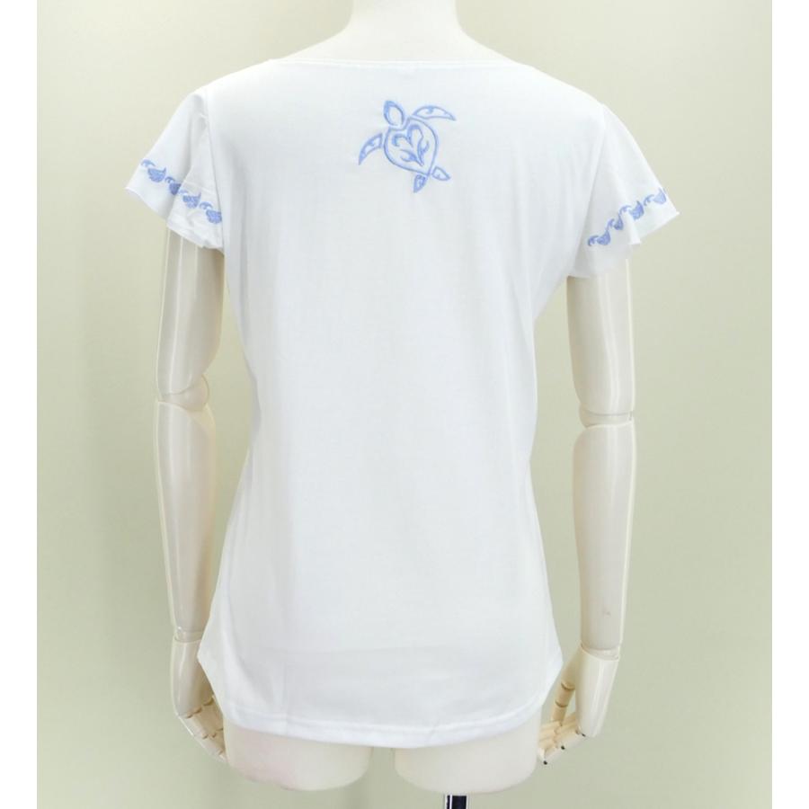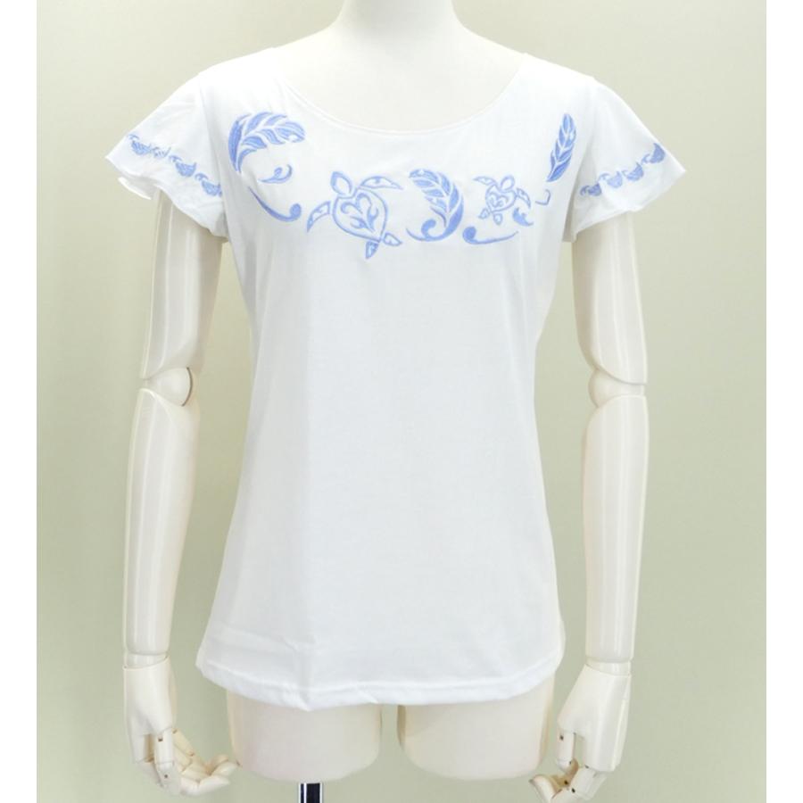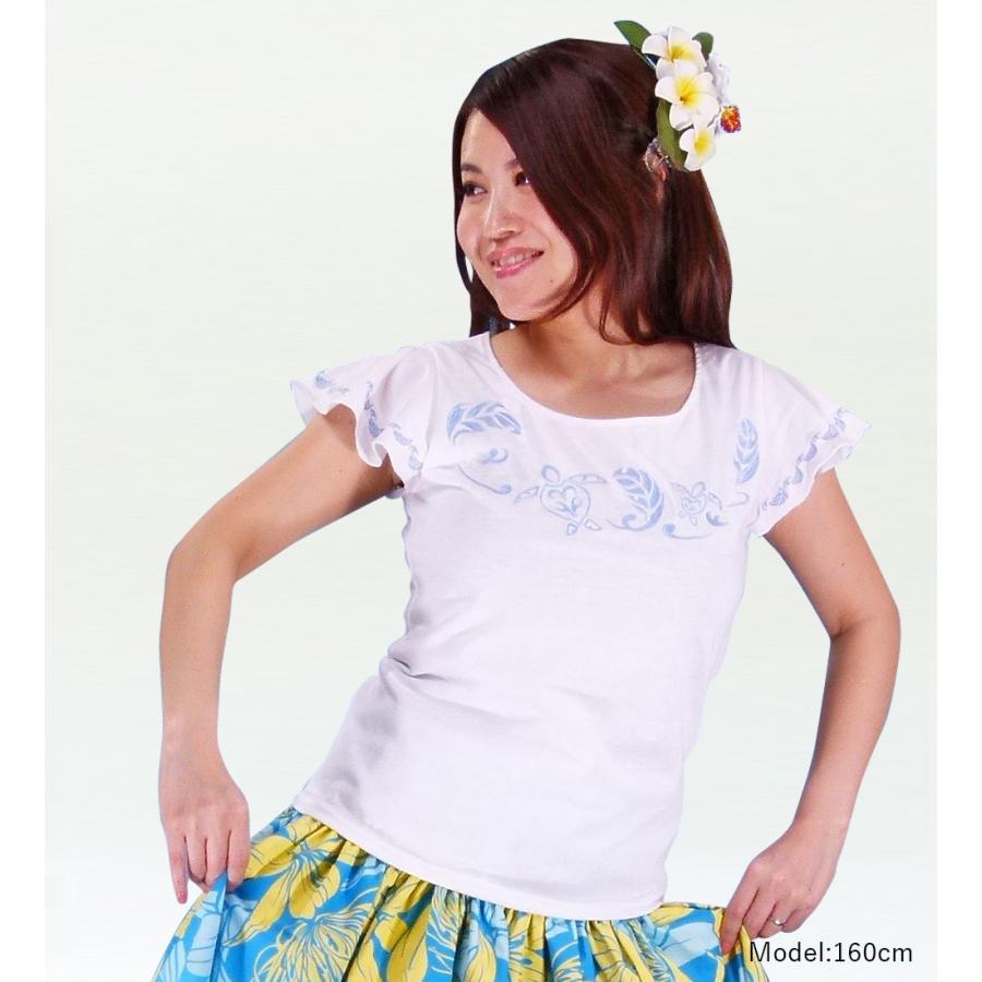 フレンチフリル袖にフロントとバックにホヌの刺繍をデザインした華やかなフラTシャツです。パウスカートとのコーディネートもしやすいのが特徴です。身丈:59cm適応ヌード寸法:バスト89〜95cm/ ウエスト87〜93cm 素材:綿100%※生産ロットによって仕様変更がある場合がございますのでご了承ください。※入荷時期によって色味が若干異なる場合がございますのでご了承ください。