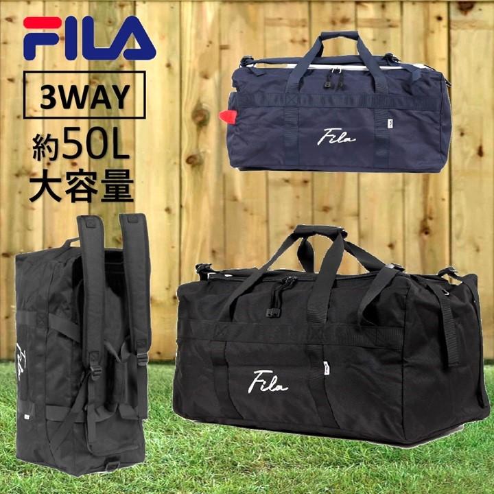 フィラ ボストンバッグ 筆記体ロゴ ユニセックス アウトドア スポーツ ジム 通学 旅行 修学旅行 部活 フィラリュック フィラショルダーバッグ 大容量 50L 3way