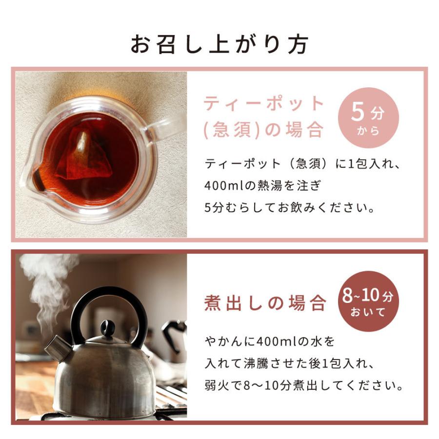 ◆煮出しの場合:やかんに400mlの水をいれて沸騰させた後1包入れ、弱火で8〜10分煮出してください。