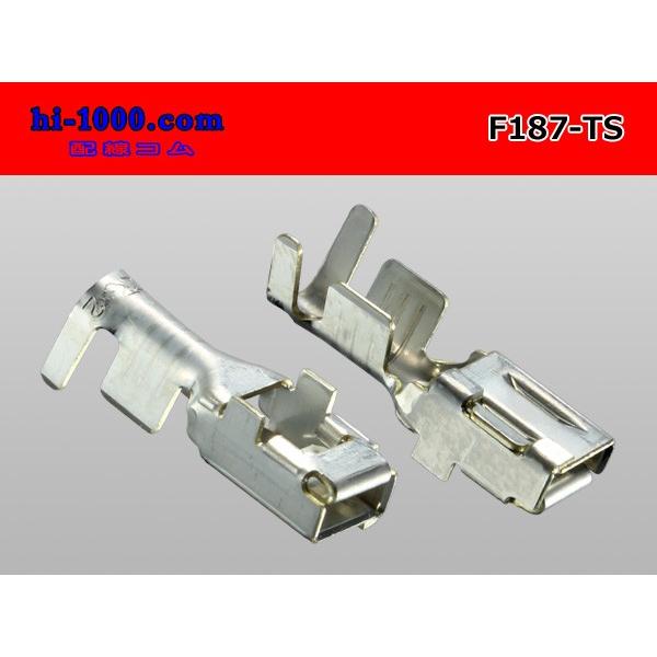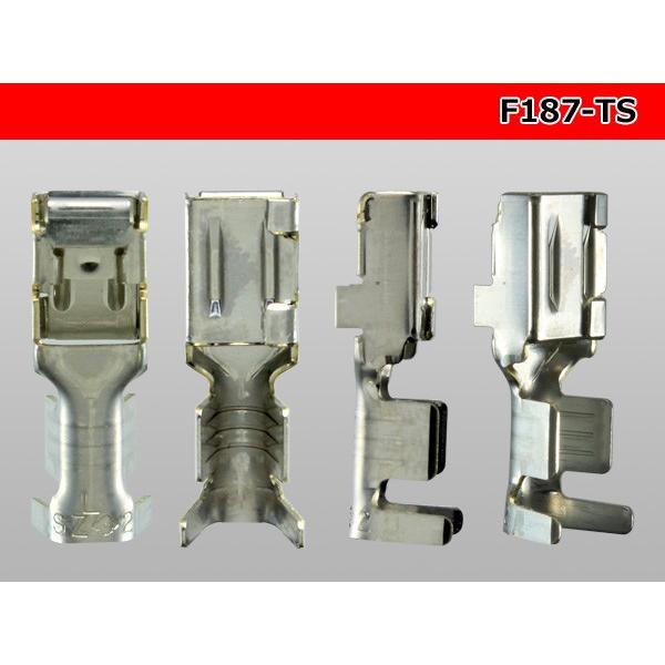 住友電装187型TS/DLシリーズFターミナル(Lサイズ)/F187-TSトヨタ純正部品 82998-12380 相当品■適用電線サイズ 2.0〜3.0平方ミリ(Lサイズ)です。■電線仕上外径 2.6〜4.1mmです。TSシリーズ以外に、DLシリーズ、一部のSLシリーズの端子としても紹介されております。※適合については十分ご確認くださいませ。
