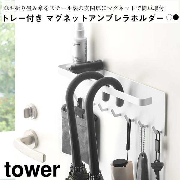 トレー付き マグネットアンブレラホルダー タワー 山崎実業 おしゃれ シンプル 高見え 便利 エントランス 傘立て アタッチメント 拡張 磁石 収納 かさたて スタンド タワー tower 傘立て 玄関 小物収納