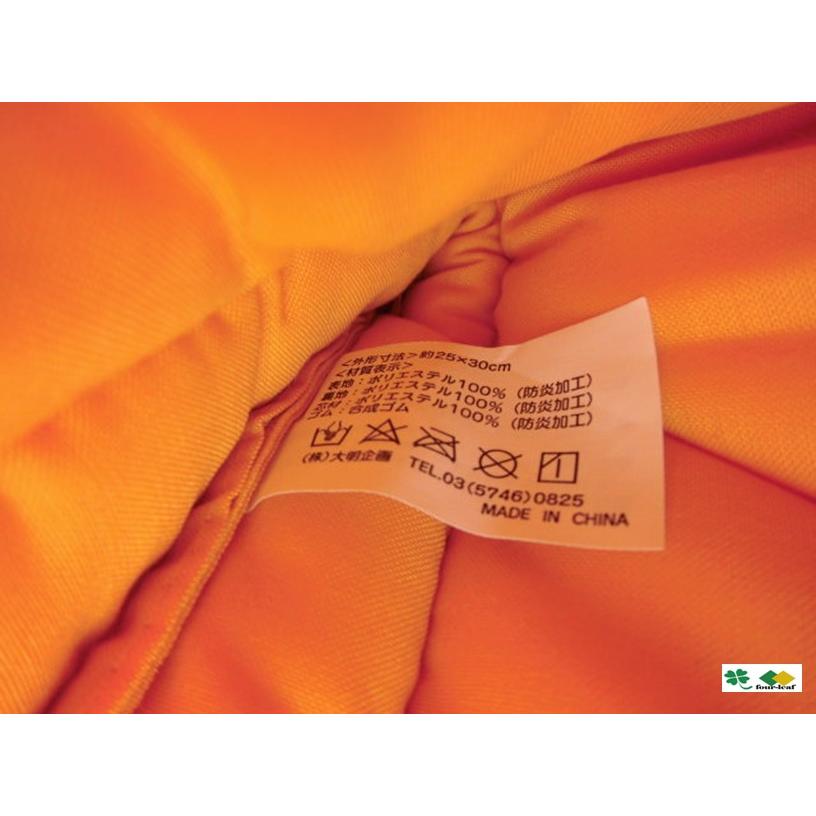 防災頭巾材質:表地…ポリエステル(難燃加工)裏材:ポリエステル(難燃加工)芯材:ポリエステル(難燃加工)