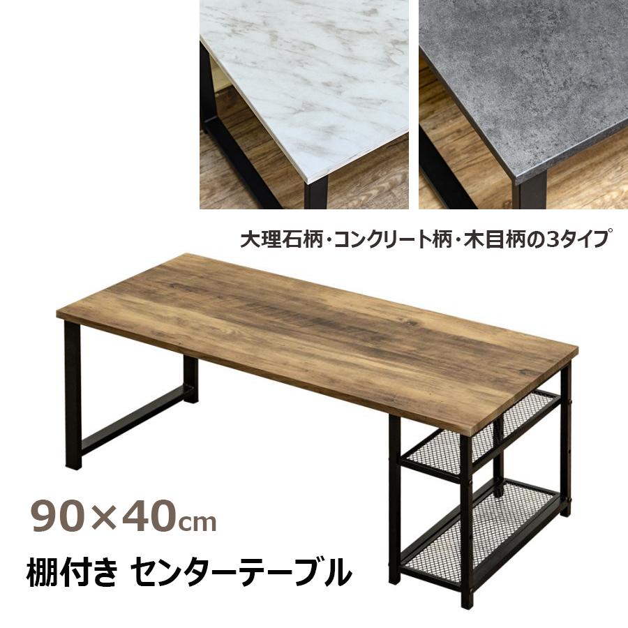 センターテーブル 棚付き 90cm幅 収納付き ソファーテーブル おしゃれ 天板 木目柄 大理石柄 マーブル模様 ストーン柄