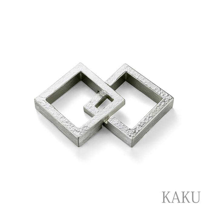 2つが重なり、寄り添う”つながり”をイメージしてデザインしました。名前の通り、同じ形状が2つ重なっています。かさね部分にはくぼみがついているため、くぼんだところに箸やカトラリーを置いてご使用ください。また箸置きとしてだけではなく、ナプキンリングやペーパーウェイトとしても使用できます。