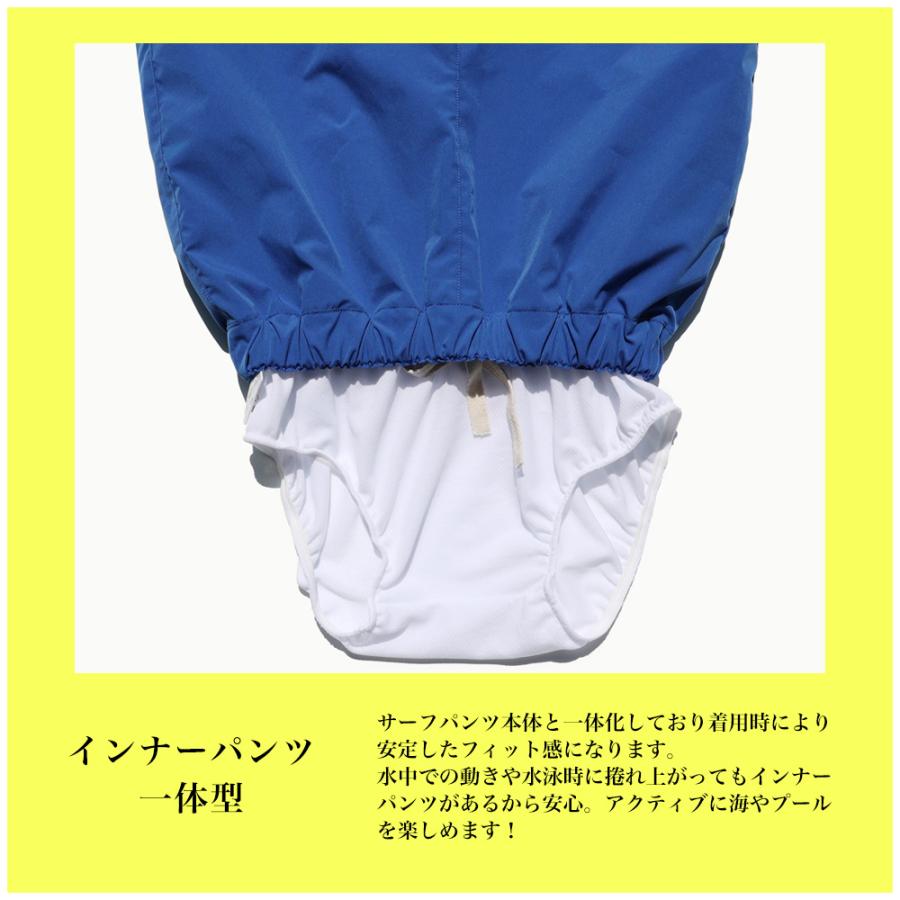 インナーパンツ付き・・・サーフパンツ本体と一体化しており着用時により安定したフィット感になります。 水中での動きや水泳時に捲れ上がってもインナーパンツがあるから安心。アクティブに海やプールを楽しめます!