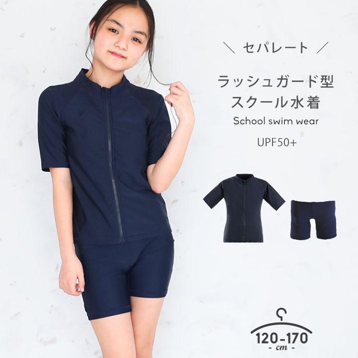 スクール水着女子 セパレート 半袖 ラッシュガード 2点セット UVカット 120 130 140 150 160 170 日焼け防止 水着 キッズ ジュニア 子供 子ども 小学校