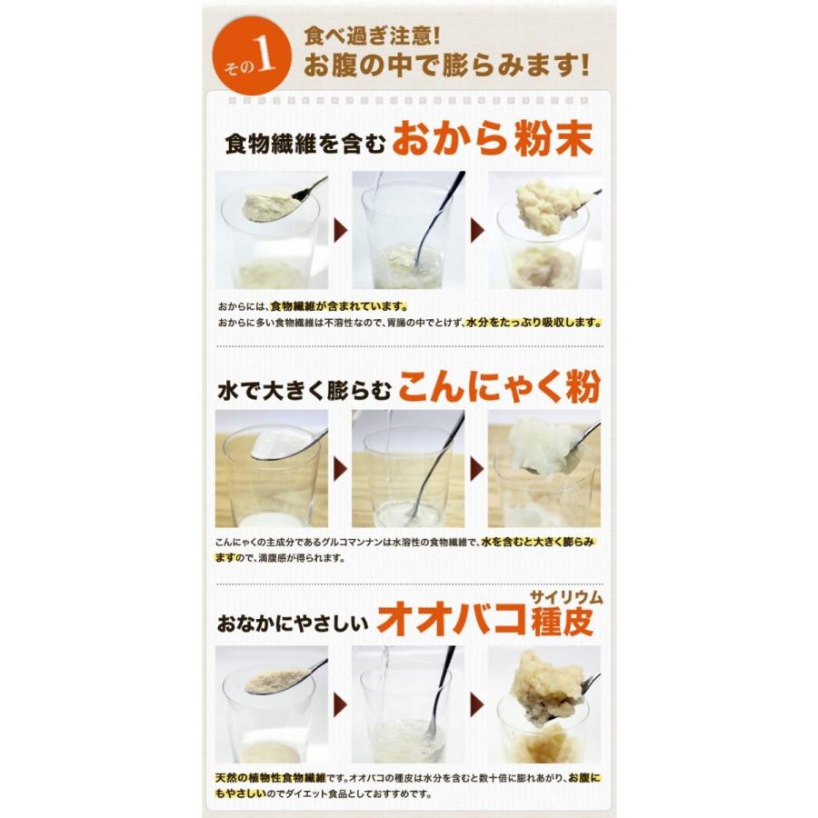 「乾燥おからパウダー、豆乳、こんにゃく(マンナン)、オオバコ種皮(サイリウム)」がたっぶり入ってます!!
