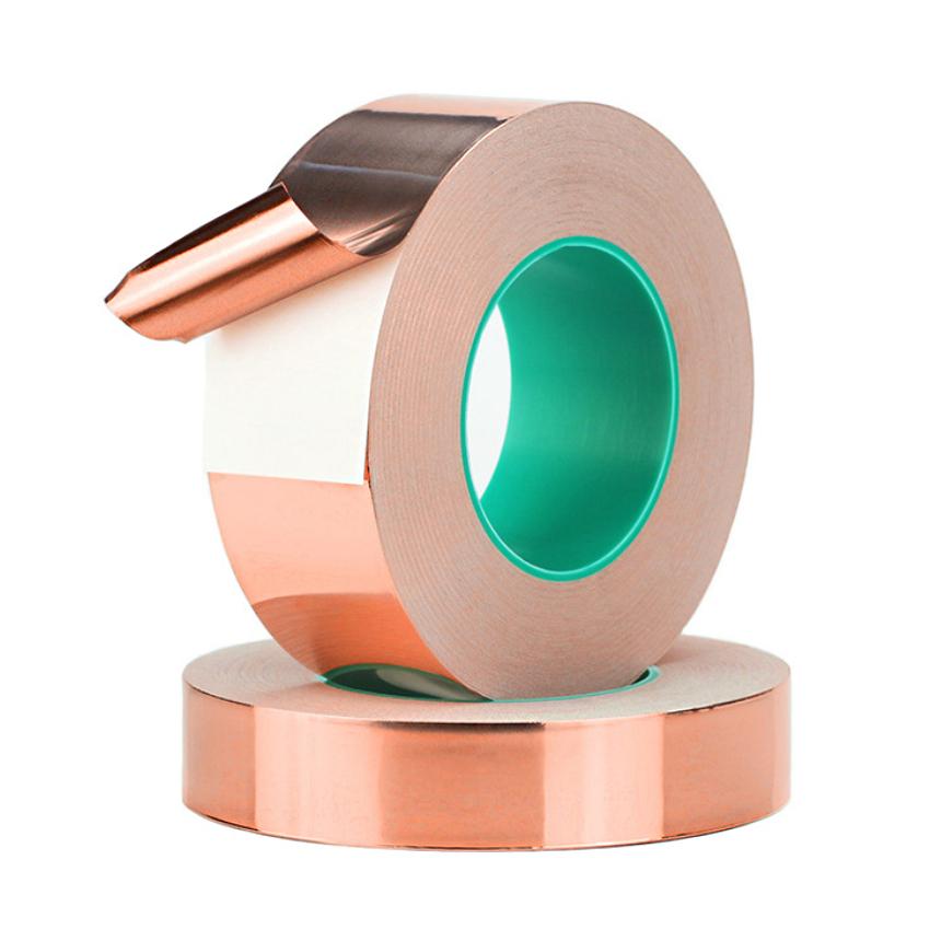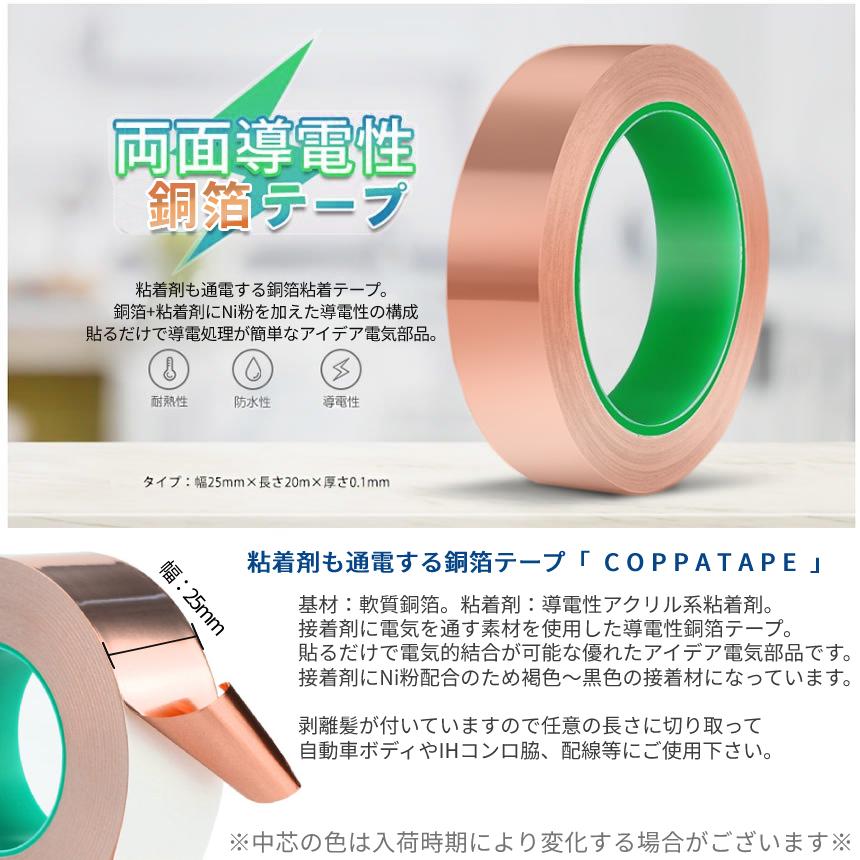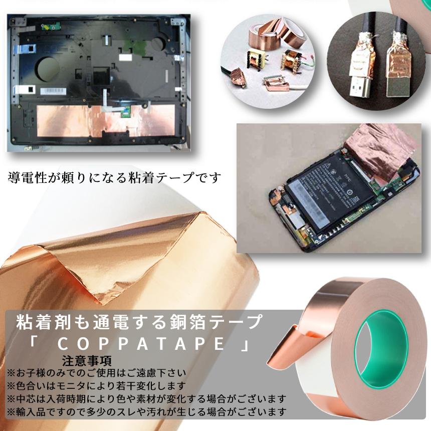 粘着剤も通電する銅箔粘着テープです。