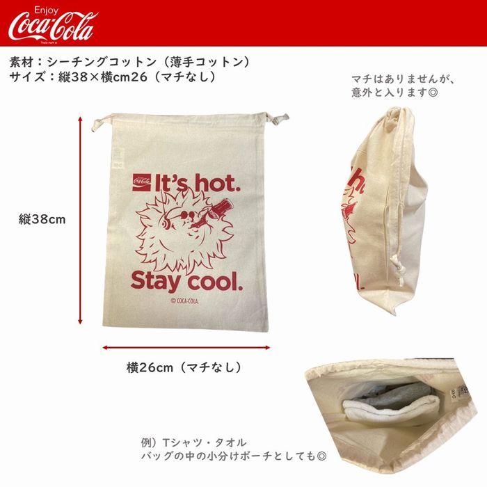 サイズ:高さ38cmx幅26cm(マチ無し)素材:薄手コットン(シーチング生地)コカ・コーラより久しぶりに巾着袋が登場!Mサイズなので少し大きめで、上履き入れなどにもバッチリのサイズ感です◎バッグインバッグや旅行ポーチ、ギフトラッピングとしても◎※こちらはメール便(ポスト投函)にてお届けいたします。