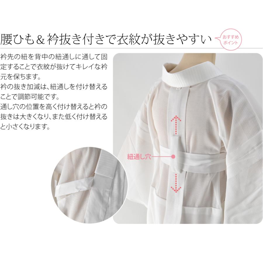 身頃:絽 袖:絽 単衣 衣紋抜き:1段 胸紐:あり 半衿:絽 手縫い 衿芯装着:可 居敷当:有り