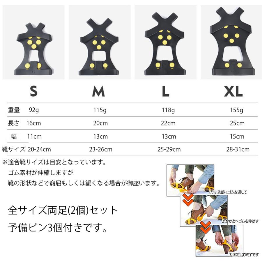 突然の積雪、凍結でもこのスパイクを携帯していれば、履いている靴にすぐ取り付け、スパイクシューズになります。サイズ・Sサイズ:20.0cm-24.0cm・Mサイズ:23.0cm-26.0cm・Lサイズ:25.0cm-29.0cm・XLサイズ:28.0cm-31.0cmカラー:ブラックセット内容:両足分スパイク、予備ピン3個付き