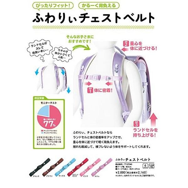 背負いずれ落ち防止ベルト ふわりぃ 通販 男の子 女の子 ふわりぃチェストベルト ストラップ チェストベルト ランドセル用品 フロントストラップ 通学 小学生 ブラック 黒 スミレ 紫 ストロベリー 赤 スカイ 水色 ピンク ブラウン 茶色 協和 ふんわりチェストベルト