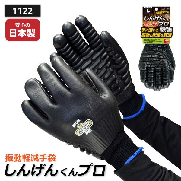 送料無料 しんげんくんプロ アトム 1122 S、M、L、LL 振動軽減防振手袋 日本製 1双 手の甲までフルコートした振動軽減手袋