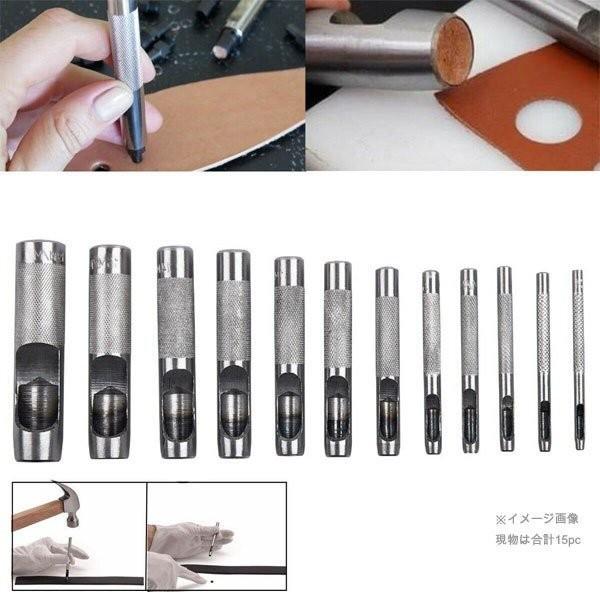 このレザーパンチツールセットには、15個の異なるサイズのパンチャーが含まれています。