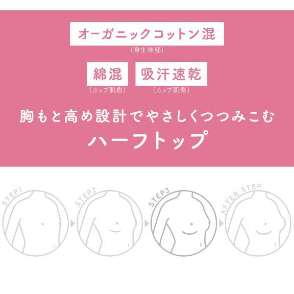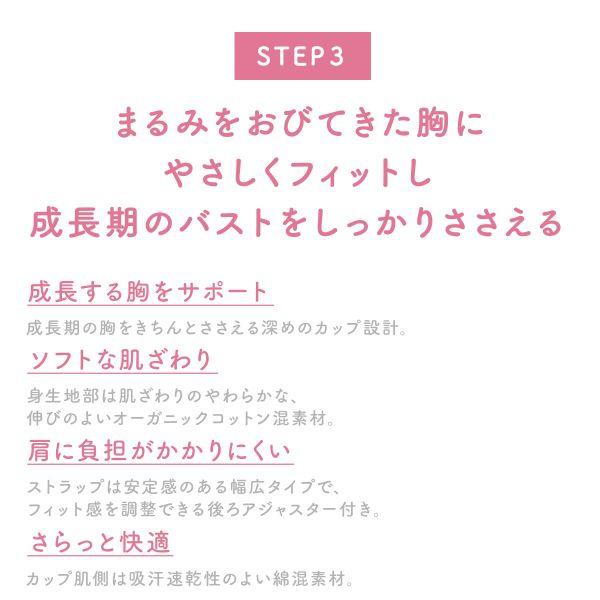 まるみをおびてきた胸にやさしくフィットし、成長期のバストをしっかりささえるSTEP3、ノンワイヤーのハーフトップブラ。