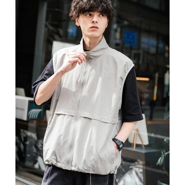 商品名:ルーズシルエット 裏メッシュスタンドネック前開きナイロンベスト