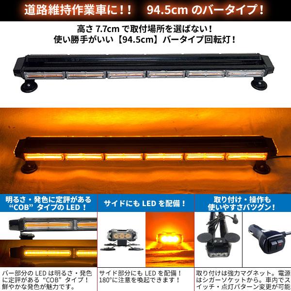 取り付けはマグネット、電源はシガーソケットから。使い勝手のよさで人気のバータイプ回転灯!バーのサイド部分にもLEDを採用し、より周囲へ注意を喚起できます。【アンバー】は道路維持作業車に最適です!◆当店は実店舗と在庫を共有しています。注文のタイミングにより完売している場合があります。完売してしまった場合、ご注文をキャンセルさせていただきます。ご了承ください。◆