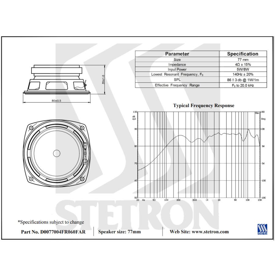 ペーパーコーンにウレタンエッジ構成のいたってシンプルな小型 3インチ(79mm) 4Ω フルレンジスピーカーユニットです。