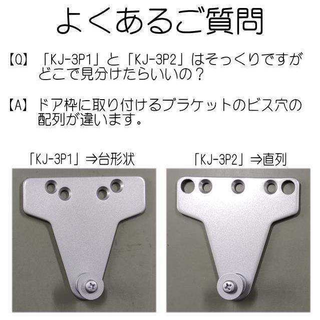 かなり前に廃番となったMIWAドアクローザー「PLS-KJ」の取替え用として作られた「MIWA KM313P-HS1」も2021年3月末で廃番となりました。この「リョービ ドアクローザー KJ-3P2」は、「PLS-KJ」または「KM313P-HS1」からビス穴をそのまま利用して取替えできます。