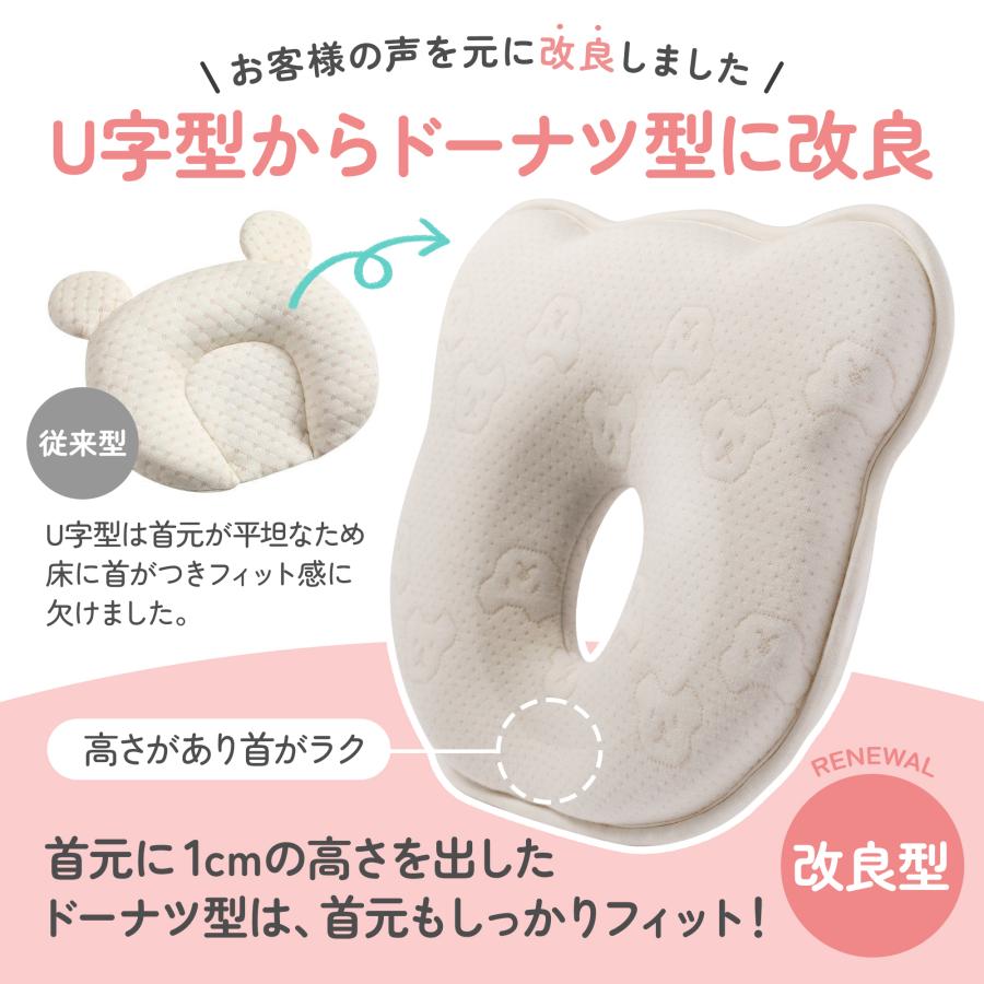 やわらかい赤ちゃんの頭をやさしく包み込む「ドリームフィット構造」。心地いいフィット感で安定感があり、お子さまもぐっすり快適です。中材は沈み込まない低反発ウレタン素材で、頭をしっかりホールド◎横向き寝も安定します。