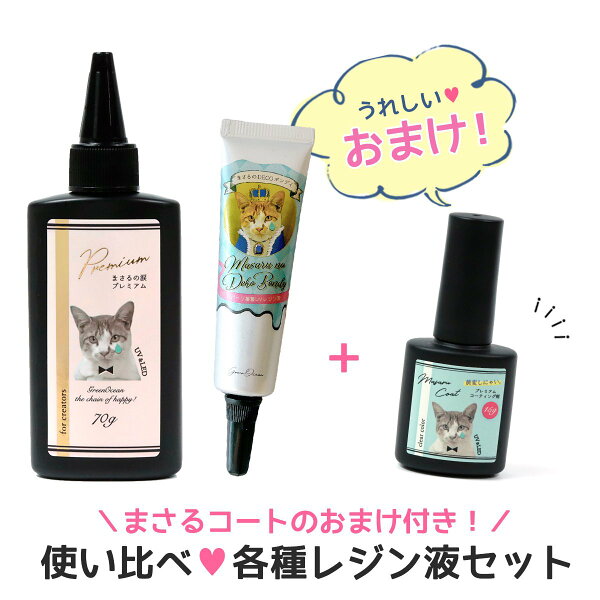 超人気UV-LEDレジン液『まさるの涙プレミアム』と接着用レジン液『まさるのDECOボンディ』2個のお値段で、大容量タイプコーティングレジン液『まさるコート』がついてくる!お試しに最適で超オトクなSETが登場♪