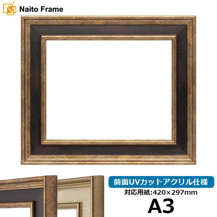 デッサン額縁 8159 A3(420×297mm) Gブラウン/Sアイボリー 前面UVカットアクリル仕様