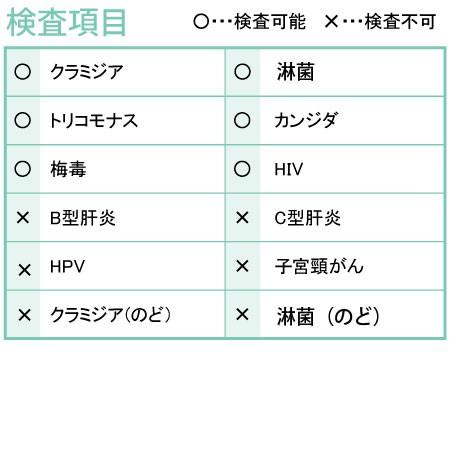 【検査できる項目 6項目】淋菌(りんびょう)トリコモナスカンジダクラミジア梅毒(ばいどく)HIV(エイズ)【郵送検査のメリット】1、性病郵送検査の利用で5分はかかりません(自分で行える)2、検査所との直接のやり取りなので費用が安い(検査自体は病院同等な正確さ)3、時間的余裕がない人の為(検査に行ったり、結果を聞きに行ったり等)4、医師にあれこれ聴かれるのがいやだという人の為(恥ずかしさ)