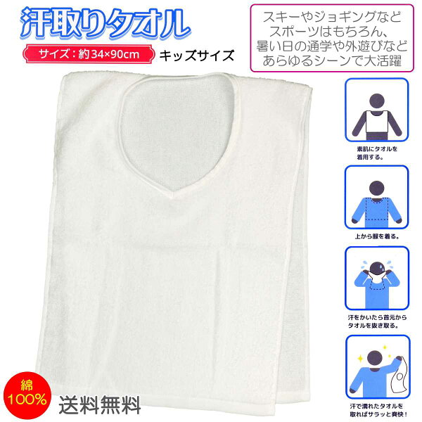 キッズ ジュニア 男女兼用 汗取りタオル マラソンタオル 綿100% 子供用 アンダータオル
