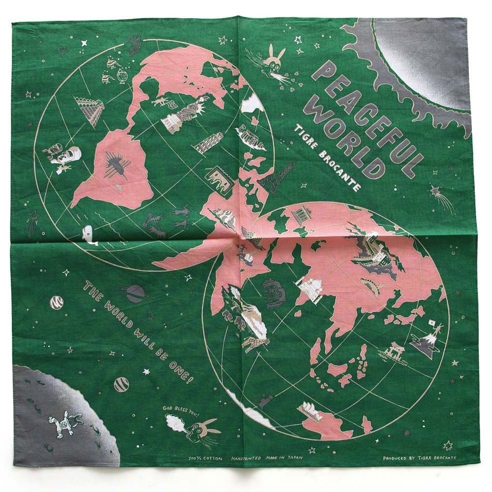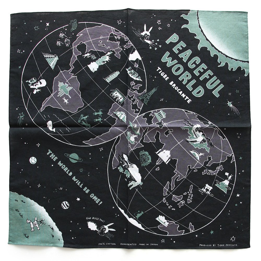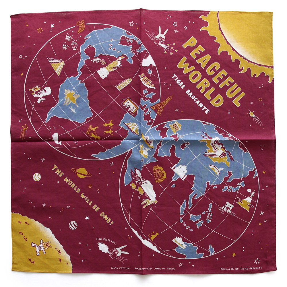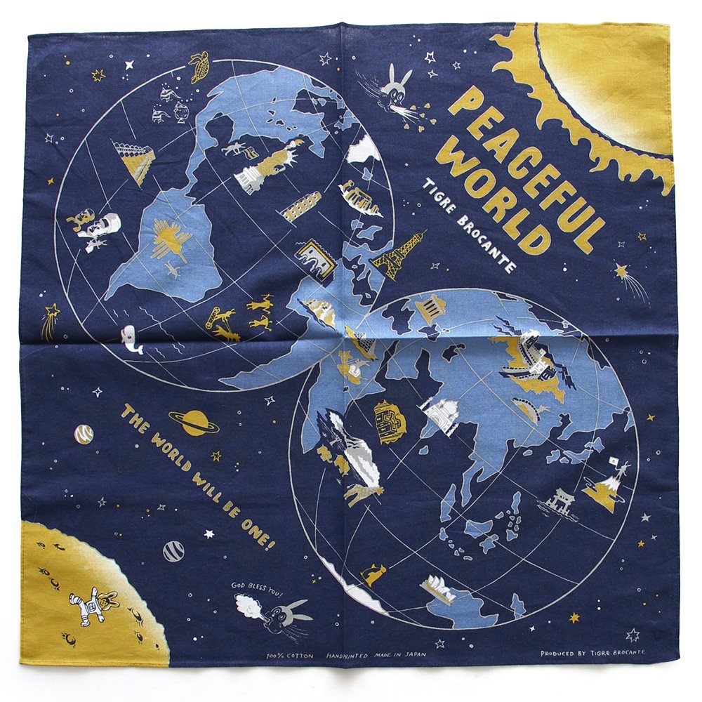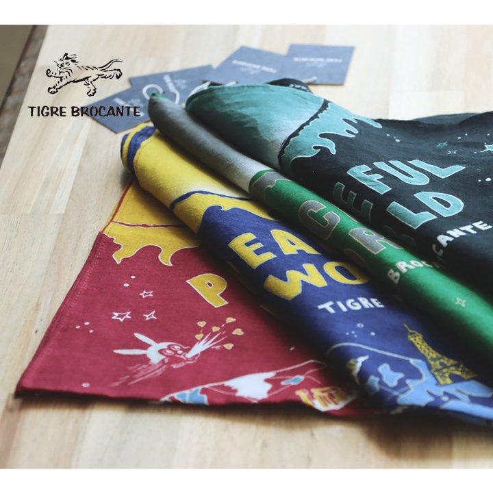 ・TIGRE BROCANTEオリジナルのワールドマップが描かれた日本製のバンダナ。
