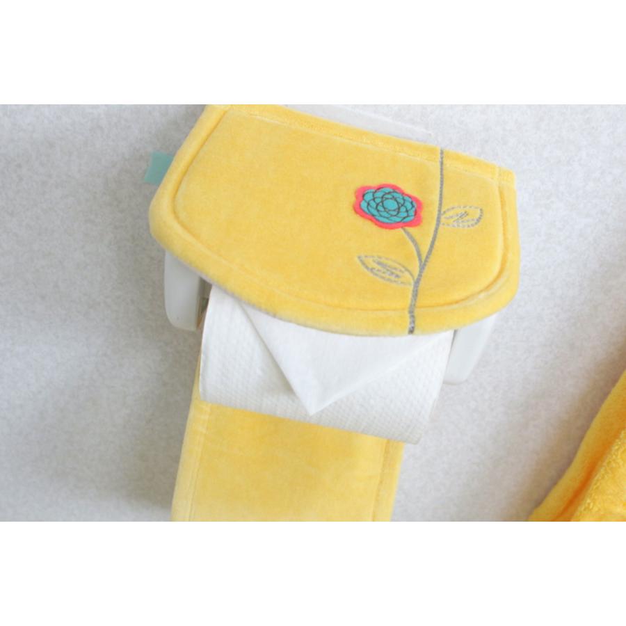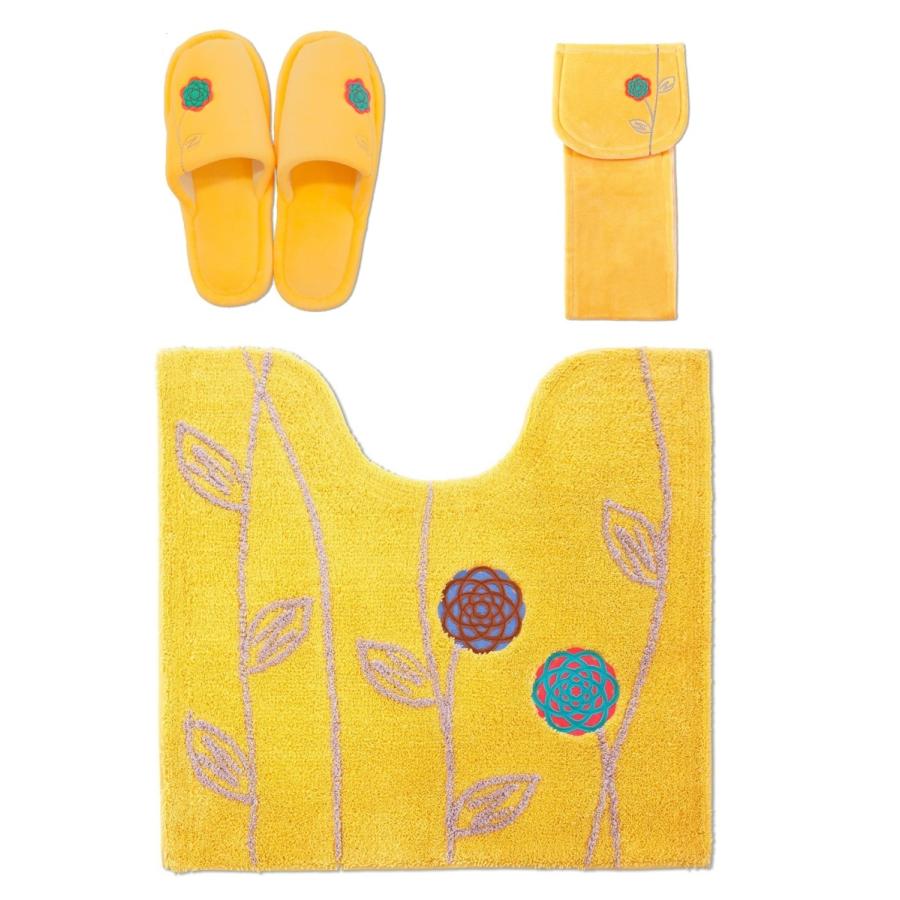 金運を良くするという黄色の普通サイズトイレマット 、スリッパ、ペーパーホルダーカバーの 3点セット。