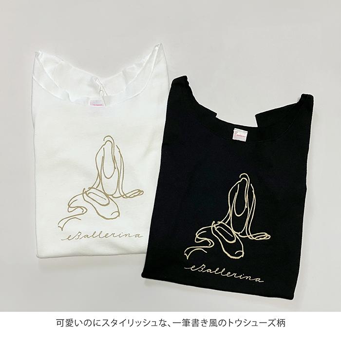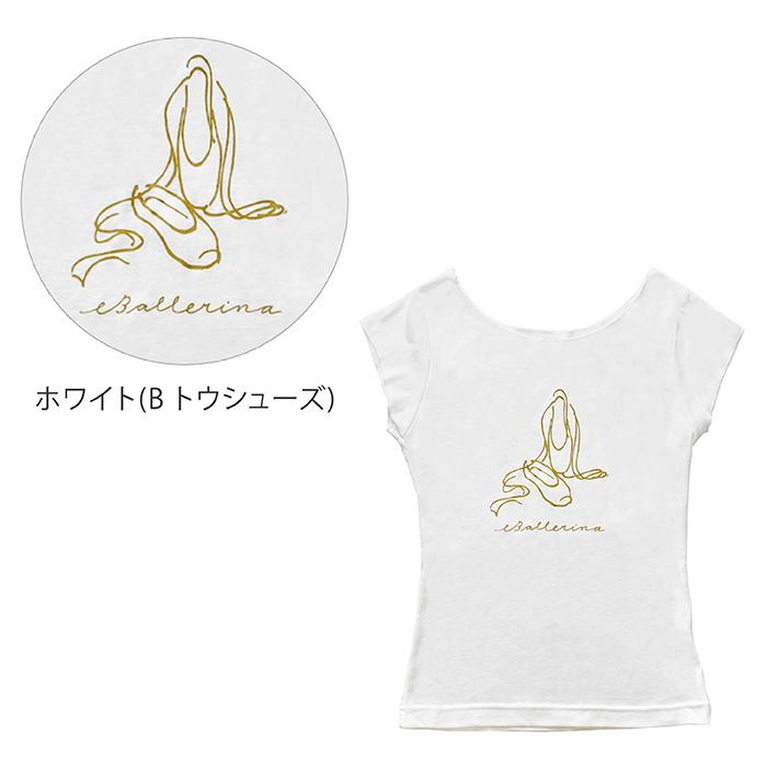 胸元のプリントは、シルエットのバレリーナ柄と、一筆書き風のトウシューズ柄の2種類。