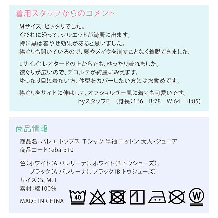商品名:バレエ トップス Tシャツ 半袖 コットン 大人・ジュニア