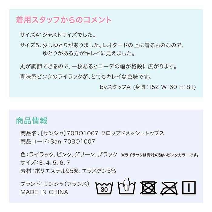 商品名:【サンシャ】70BO1007 クロップドメッシュトップス