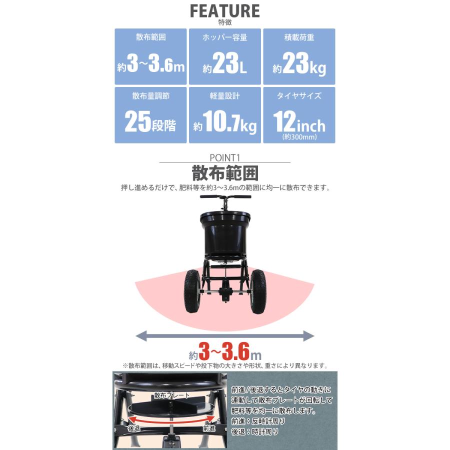 ■散布範囲は約3〜3.6mの範囲に均一に散布できます。