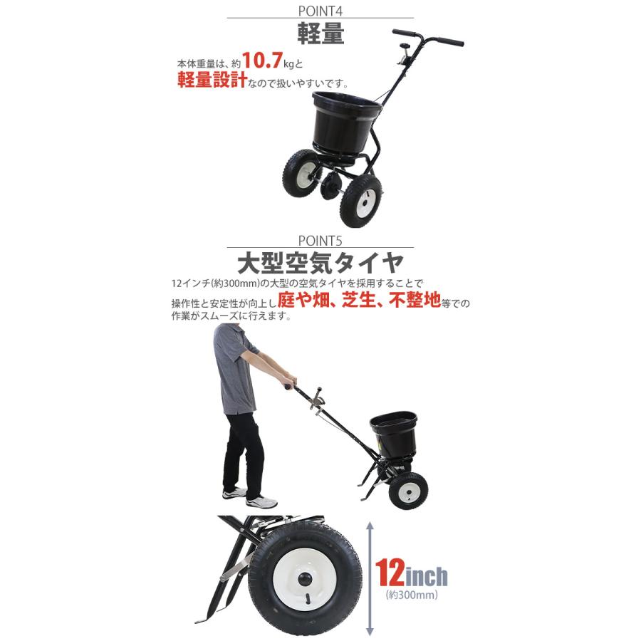 ■押し進めるだけで簡単に肥料等を均一に散布できる肥料散布機です。
