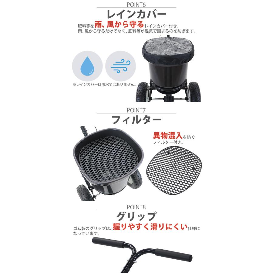 ■肥料等を雨、風から守るレインカバーと異物の混入を防ぐフィルター付き。