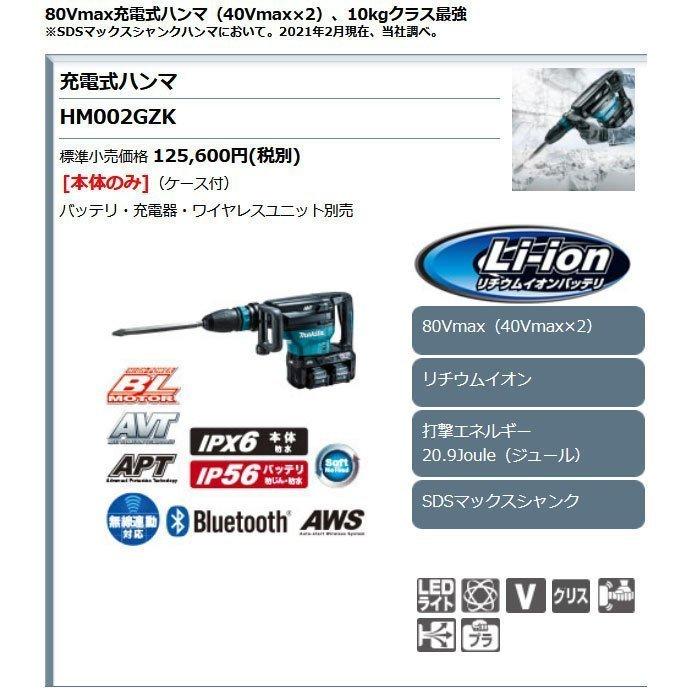 マキタ 80Vmax 充電式ハンマ HM002GZK SDSマックスシャンク 本体・ケースのみ(バッテリ・充電器別売)