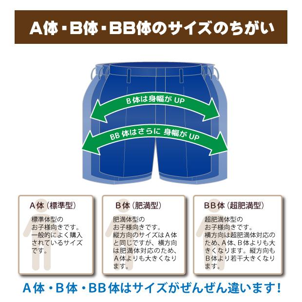後ろゴム仕様。紺色。太もも半分丈。肥満体対応サイズ。