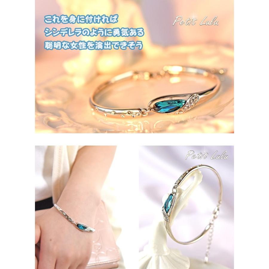 伝統的なシンデレラのドレスを彷彿とさせるブレスレットです。光を多面的に反射させてきらめく、ブルーのスワロフスキーのカットが特に印象的。この透明感のあるブルーのスワロフスキーに、散りばめられているクリアなスワロフスキーはまさにシンデレラが舞踏会で身にまとうドレスのよう。これを身に付ければ、シンデレラのように勇気ある聡明な女性を演出できそうです。