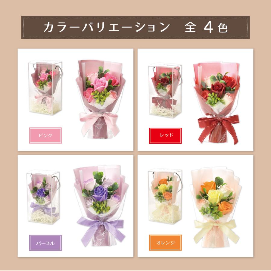 【ソープフラワーの特徴】花びらが石けん素材で作られた観賞用のお花です。プリザーブドフラワーと比べて花弁が大きく、値段がお手頃です。 水やりやお手入れの必要がなく、枯れる心配も虫や花粉の心配もありません。