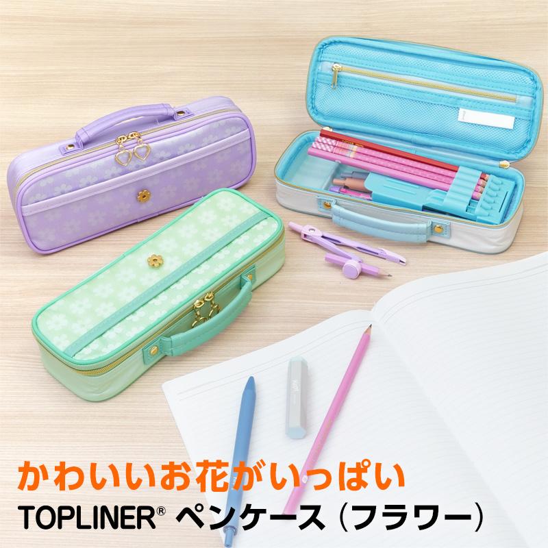 筆箱・筆入れ トップライナーペンケース(フラワー)大容量 おしゃれ ハート 子供 小学校 女子 2025限定