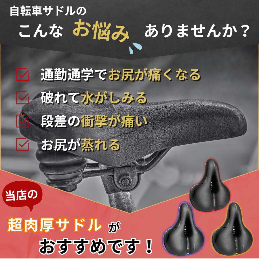 「元々 自転車 に付いている サドル では、お尻が痛くなって長時間乗ることができない」というお客様の声に応じて、 超極厚 ソフト クッション 内蔵された 自転車サドル を仕上げました。