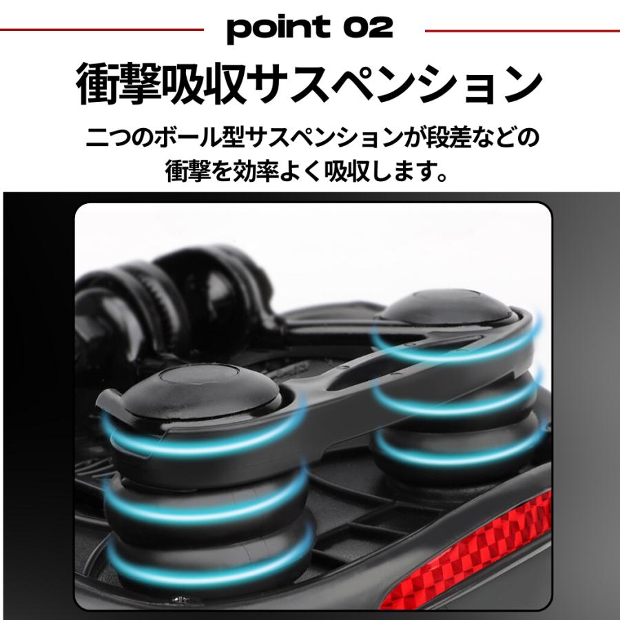 座面が大きく、厚さ5cmもの クッション が、 肉厚 で お尻 への 衝撃 を 分散 ・軽減し、長時間でも快適に走行できます。