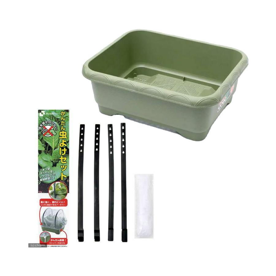 メーカー:リッチェル プランター リッチェル 緑のやさいプランター 50型 グリーン かんたん虫よけセット ガーデニング 園芸用品 肥料 S06ガーデニング gadna13 緑の野菜プランター 4973655851630 家庭菜園 ベランダ菜園 richell 葉もの 幅広 通気性 排水性 収穫 菜園 緑のやさい 風よけネット 園芸 野菜 虫よけ 除け 避け 害虫駆除 除虫草 菜園上手 4973655830918 防虫 手軽 簡単 葉ものやさい かんたん虫よけ 小松菜 ほうれん草 レタス 20220325 tsbs y22m03 カバー 虫除け ネット