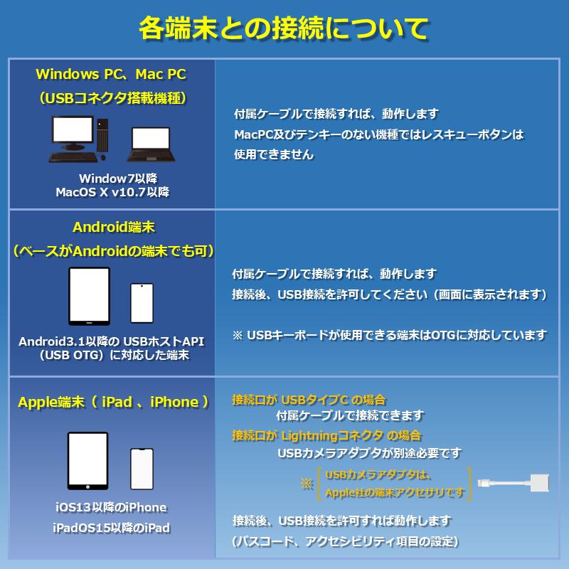 ※スマートフォン、タブレットでご利用になる場合は、OTGに対応している必要があるため、動作環境を満たしているか確認をお願いいたします。
