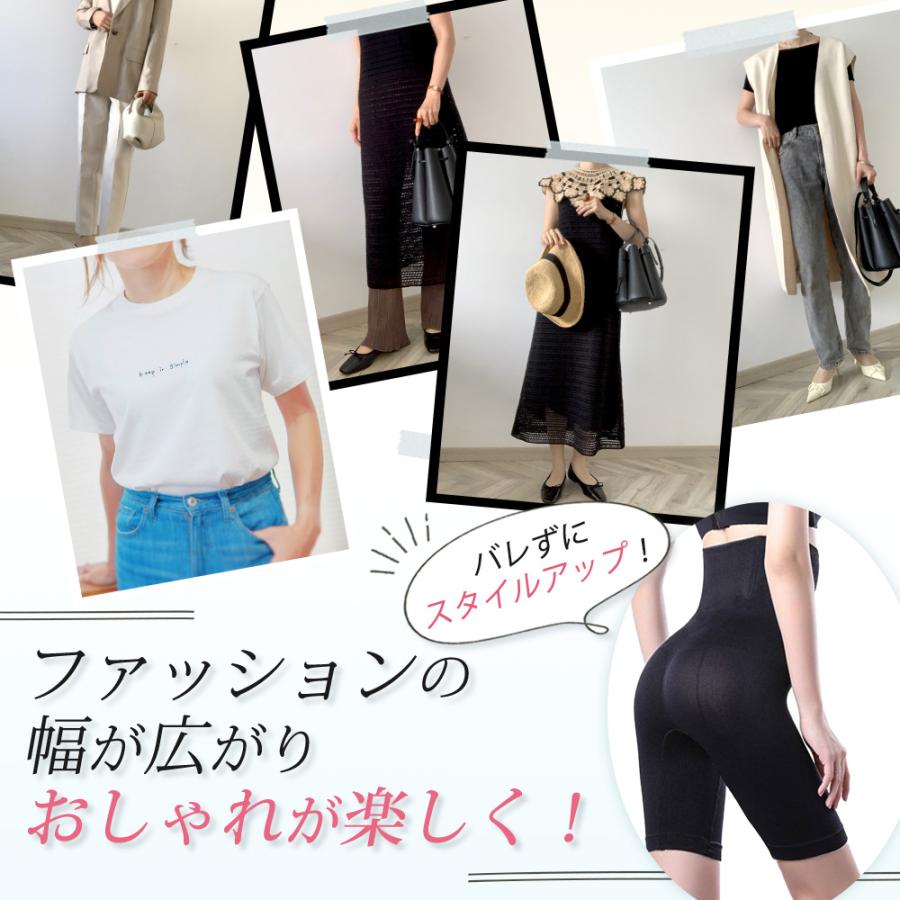 お腹を引き締めながら、ヒップも持ち上げてサポートするので、ワンピースやタイトなボトムスも綺麗に決まります。