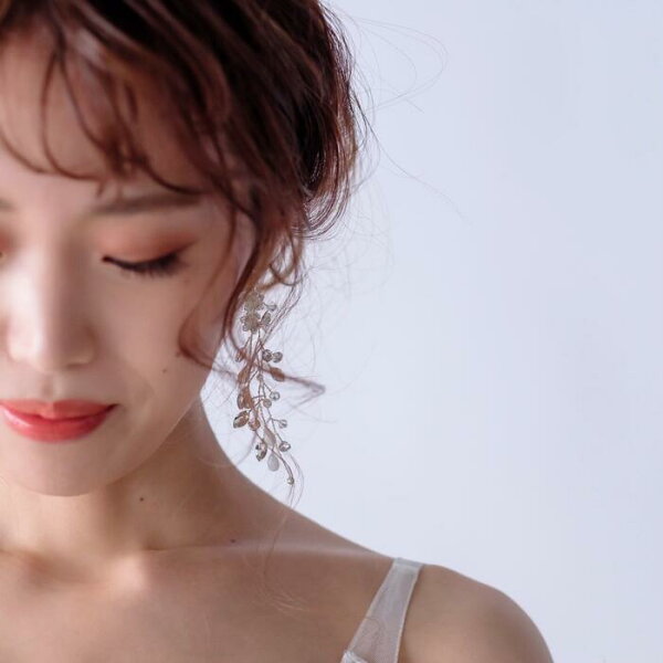 小枝のナチュラル感、ボリューム感もあり、個性的で、華やかで、お写真映えもし、オシャレな可愛らしい花嫁様を演出致します。