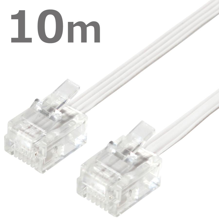 モジュラーケーブル 10M 家庭用 電話線 フラット テレホンケーブル ひかり電話 FAX 対応 6極4芯 6極2芯対応 ホワイト CMJ-F10WH 送料無料 TARO'S