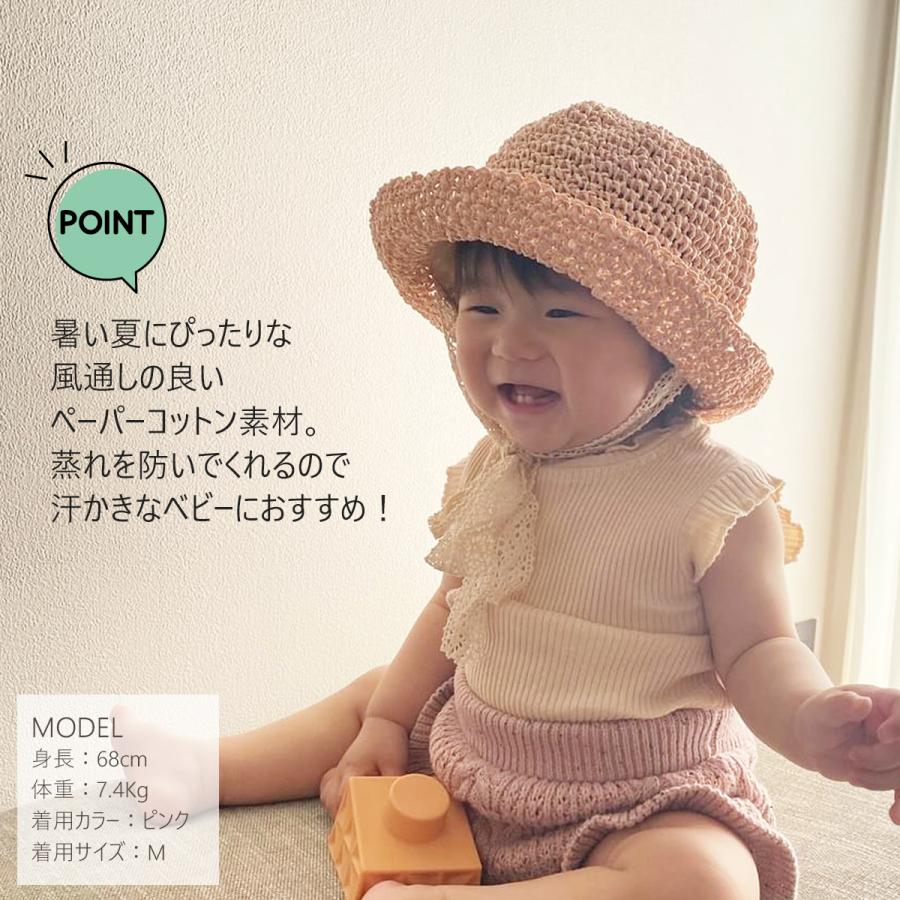 ナチュラルな風合いとあご紐のりぼんがポイント。