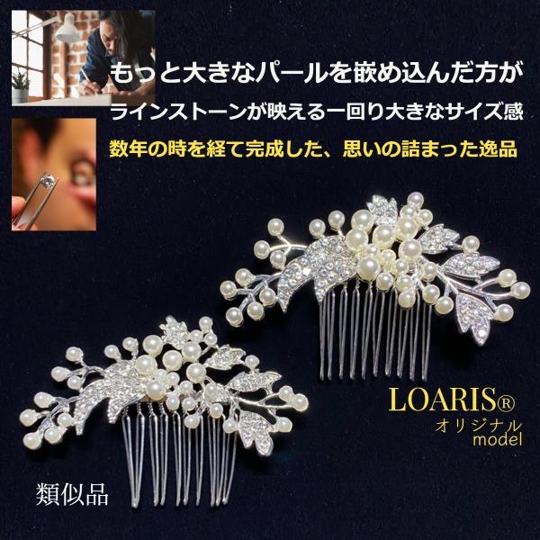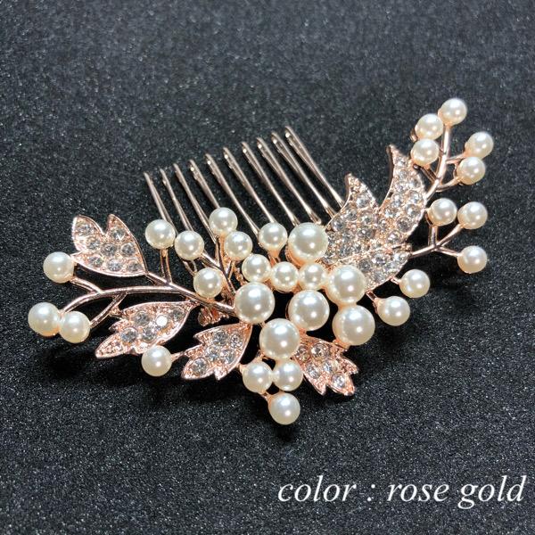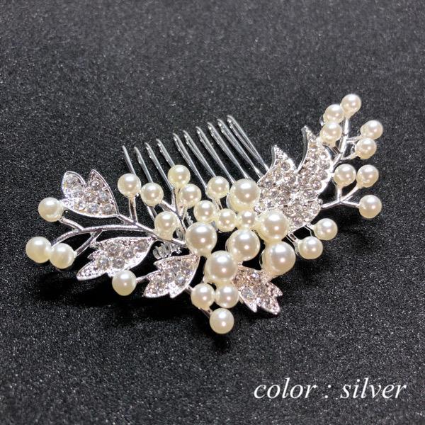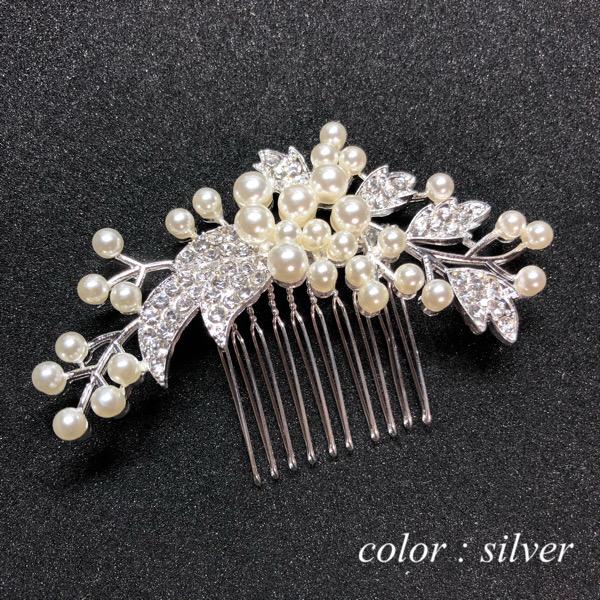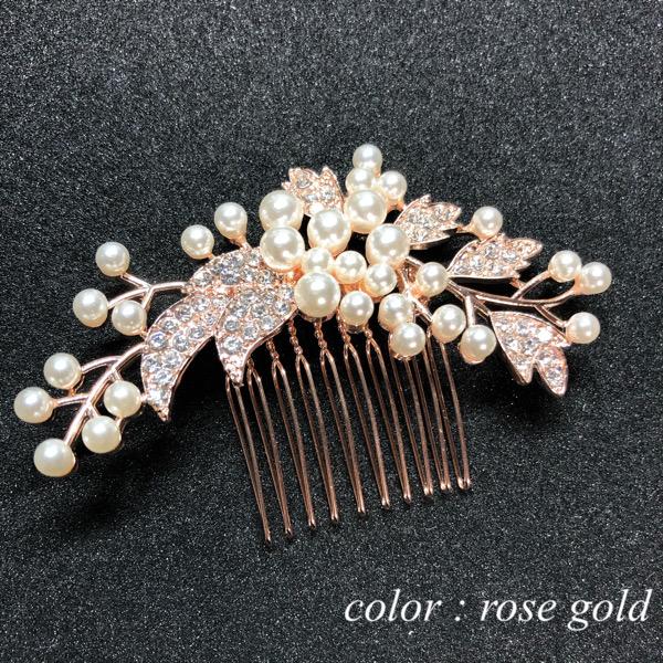 パールとラインストーンを1つ1つ丁寧に嵌め込んだヘアコーム。